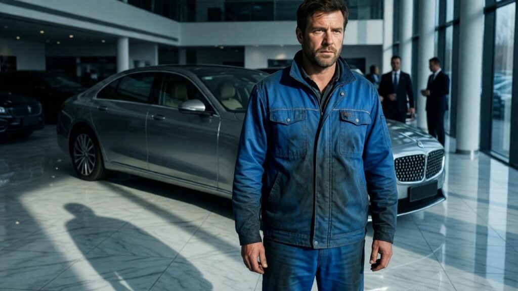 An jenem Nachmittag hielt eine schwarze Luxuslimousine vor dem Gebäude. Als der Mann ausstieg, erstarrte der Showroom. Es war derselbe Mechaniker, den sie hinausgeworfen hatten – nur trug er jetzt einen maßgeschneiderten dunklen Anzug. An seinem Handgelenk blitzte eine schlichte, aber kraftvolle Uhr – ein Zeichen von Beständigkeit und Erfolg, nicht von Lautstärke.