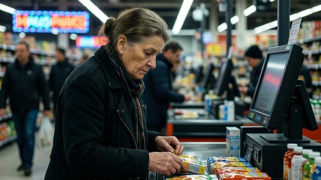 Der Supermarkt war so belebt, wie er es gegen Tagesende oft ist – quietschende Einkaufswagen, piepende Scanner und müde Menschen, die wie ferngesteuert durch die Gänge schlenderten. Unter den grellen Lichtern stand eine ältere Dame an der Selbstbedienungskasse mit einem kleinen Korb voller Grundnahrungsmittel: Brot, Tee, etwas Gemüse und eine Packung Reis. Nichts Besonderes. Einfach die Art von Dingen, die einen Haushalt am Laufen halten.